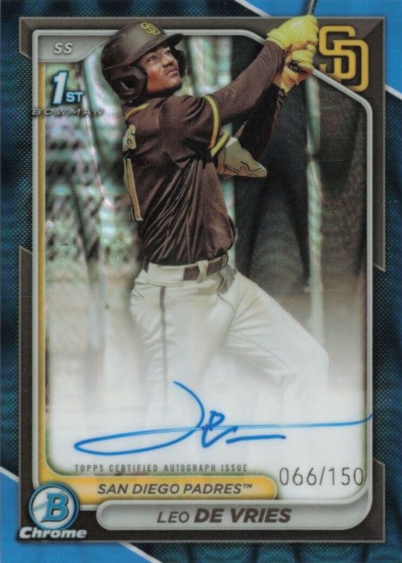 LEO DE VRIES 2024 BOWMAN CHROME 1ST BLUE RAYWAVE PADRES AUTO /150 Q3573