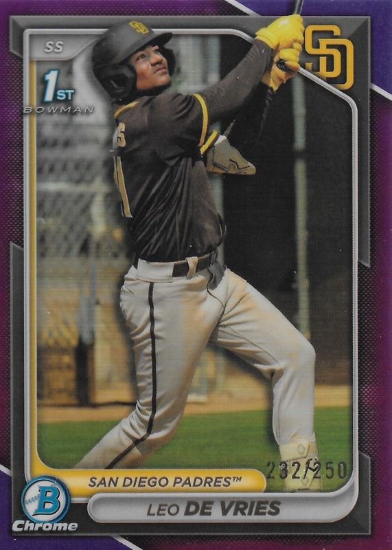2024 Bowman Chrome Purple Refractor BCP-179 LEO DE VRIES 1st /250 - Padres