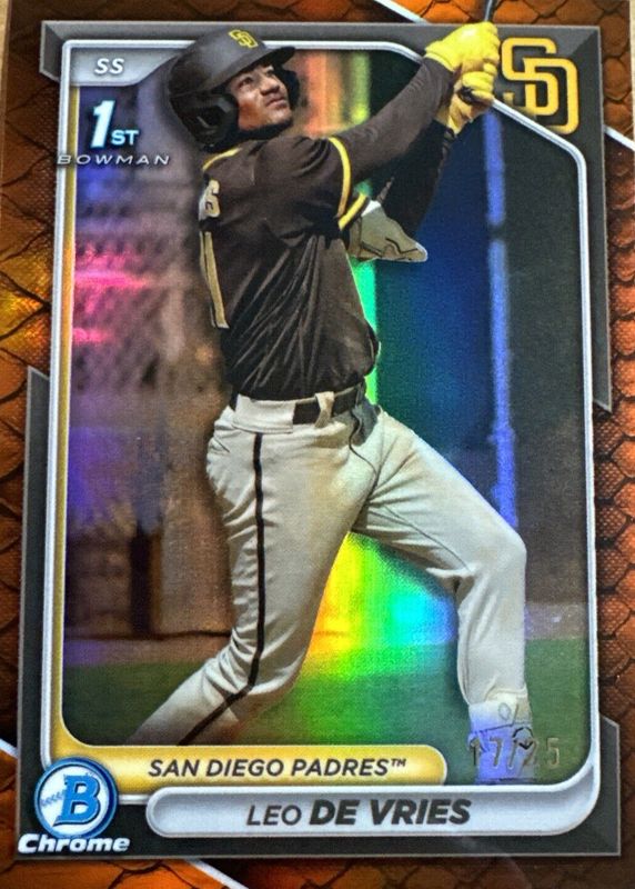 2024 Bowman Chrome Leo De Vries #BCP-179 Orange Reptile Refractor /25 Padres