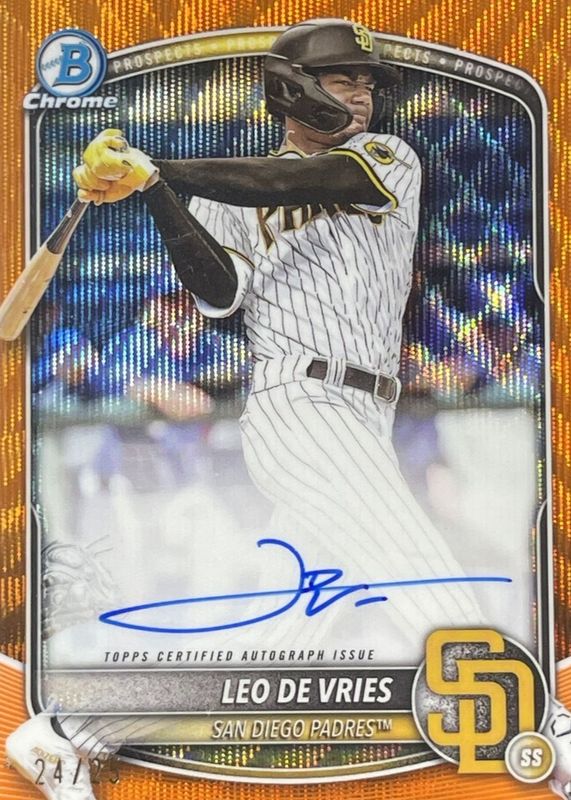 Leo De Vries 2025 Bowman #CPA-LD Chrome Prospect Auto - Orange Wave Refractor /25 RAW Price Guide