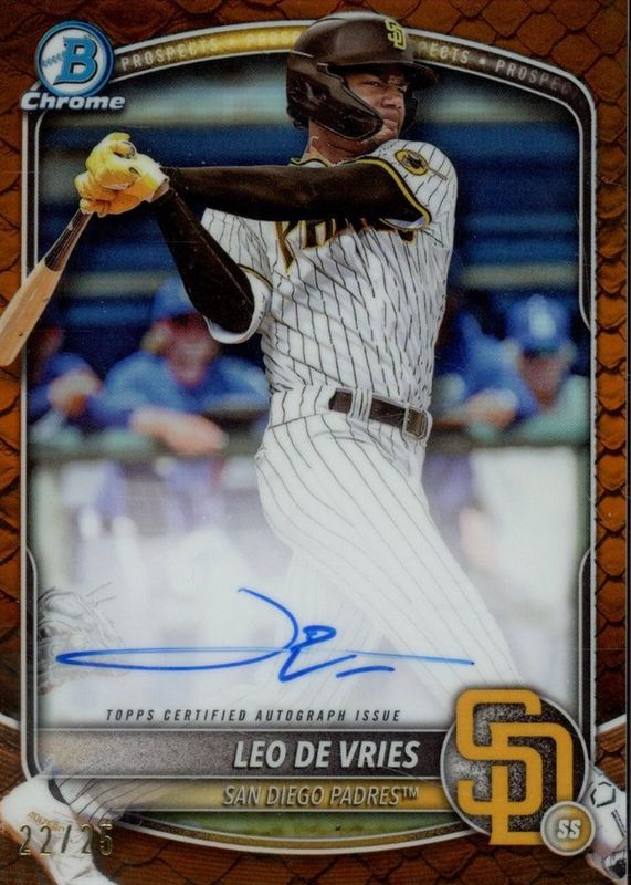 Leo De Vries 2025 Bowman #CPA-LD Chrome Prospect Auto - Reptilian Orange Refractor /25 RAW Price Guide
