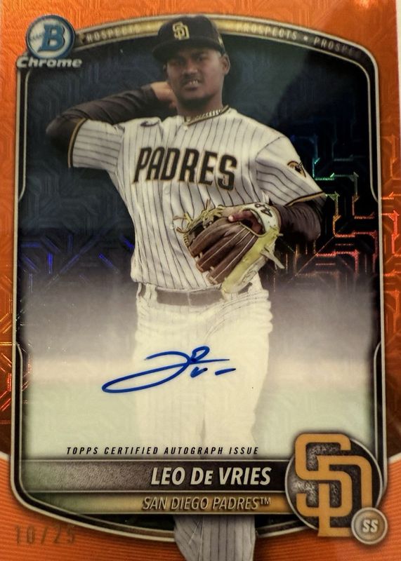 2025 Bowman Chrome Leo De Vries Auto/Autograph /25 Orange Mojo San Diego Padres