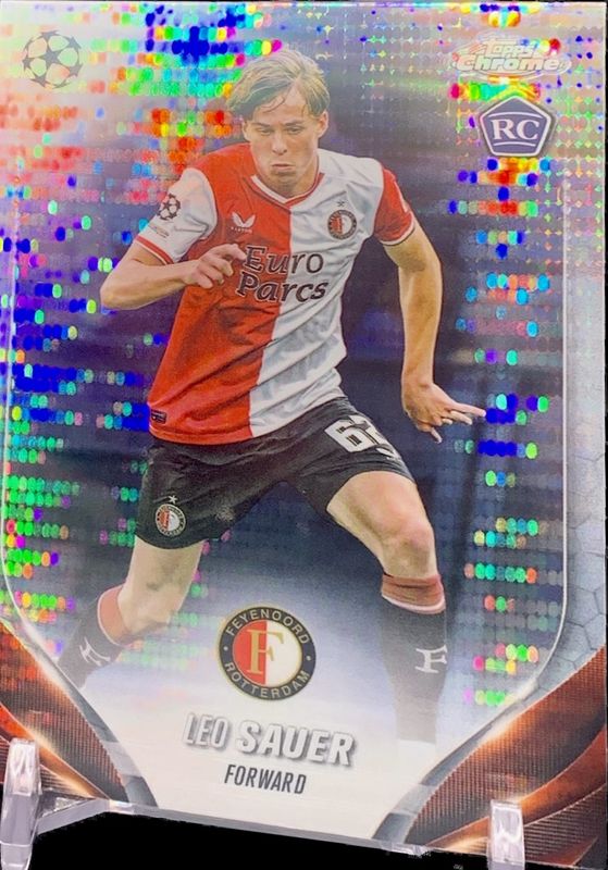 Leo Sauer 2023 Topps Chrome UEFA Club Competitions #129 Pulsar Refractor Rookie RAW Price Guide