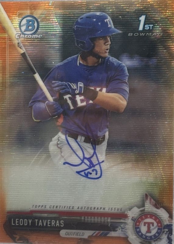 Leody Taveras' Baseball cards are available in at least 18 sets. Leody Taveras' biggest 7-day price movers are 2017 Bowman Chrome #CPA-LT Prospect Auto (1st), 2017 Bowman Chrome #CPA-LT Prospect Auto - Orange Wave Refractor /25 (1st), and 2022 Topps Gypsy Queen #7 Missing Black Plate.