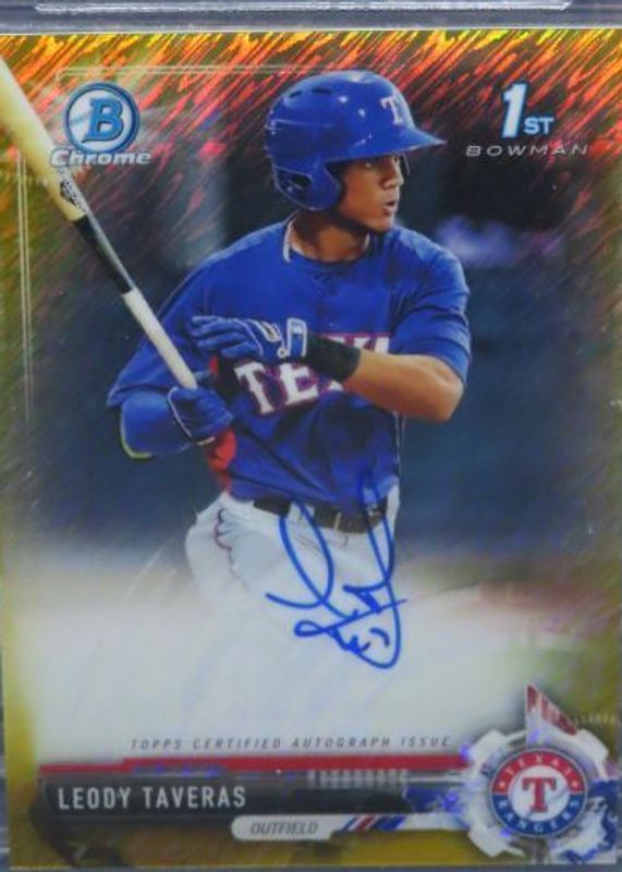 Best Prices Available For Sale of Leody Taveras 2017 Bowman Chrome #CPA-LT Prospect Auto - Gold Shimmer Refractor /50 (1st)