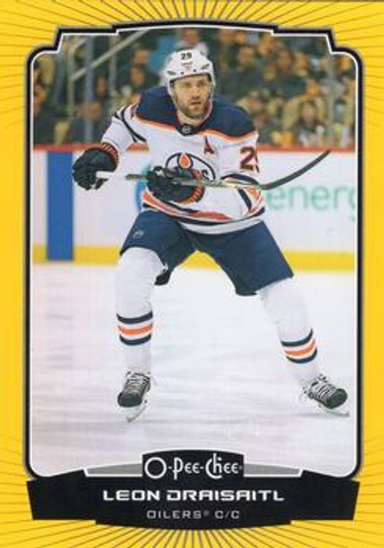 The Leon Draisaitl 2022 O-Pee-Chee #4 Yellow Border card is 1 of 55 Leon Draisaitl's card variations in the 2022 O-Pee-Chee set being tracked by Sports Card Investor, including #4 Base, #4c Base, #504 Base, #4b Base, and #4 Blue Border.