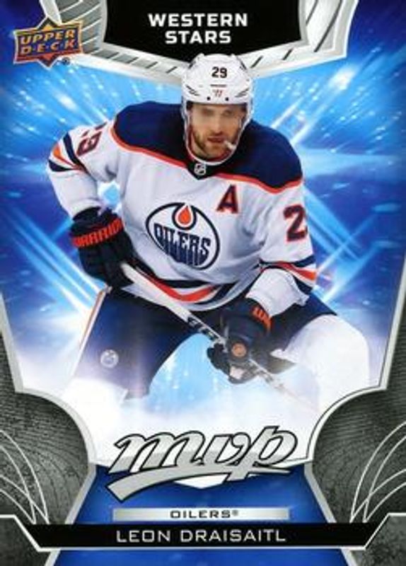 The Leon Draisaitl 2022 Upper Deck MVP #WS-4 Western Stars card is 1 of 41 Leon Draisaitl's card variations in the 2022 Upper Deck MVP set being tracked by Sports Card Investor, including Base, Blue Script, Gold Script, Ice Battles, and Silver Script.