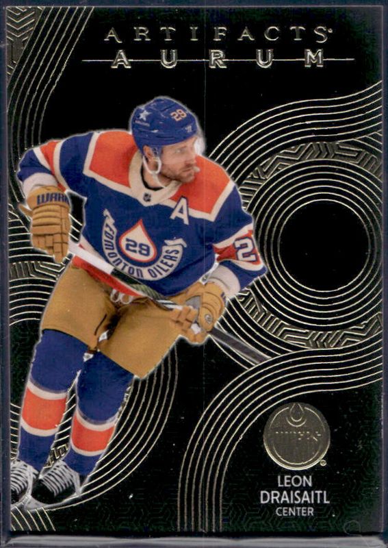 The Leon Draisaitl 2024 Upper Deck Artifacts #A-LD Aurum card is 1 of 33 Leon Draisaitl's card variations in the 2024 Upper Deck Artifacts set being tracked by Sports Card Investor, including Foilboard, Foilboard Gold, Neon Green, Plexi, and Silver /699.