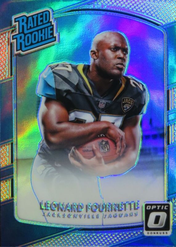 The Leonard Fournette 2017 Optic #169 Holo Rookie card in Raw condition has moved up $0.13 (+13.1%) in the last 30 days and was last sold for $1.12 .