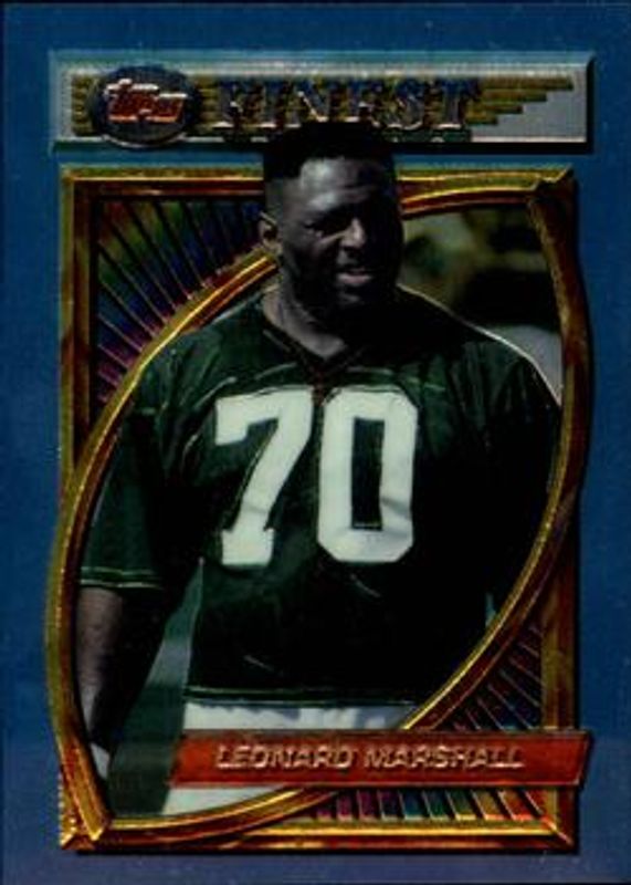 The Leonard Marshall 1994 Topps Finest #72 Base card is 1 of 2 Leonard Marshall's card variations in the 1994 Topps Finest set being tracked by Sports Card Investor, including Refractors.