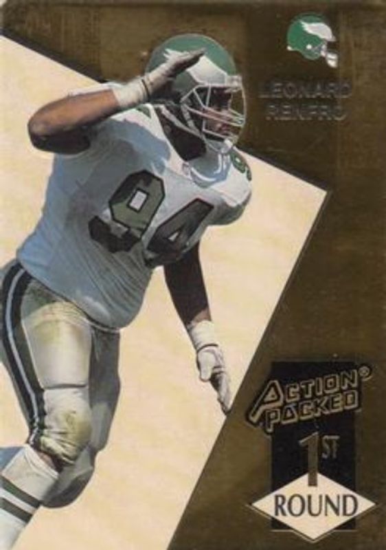 The Leonard Renfro 1993 Action Packed #185 Base Rookie card is 1 of 3 Leonard Renfro's card variations in the 1993 Action Packed set being tracked by Sports Card Investor, including Mint /500, and 24K Gold.