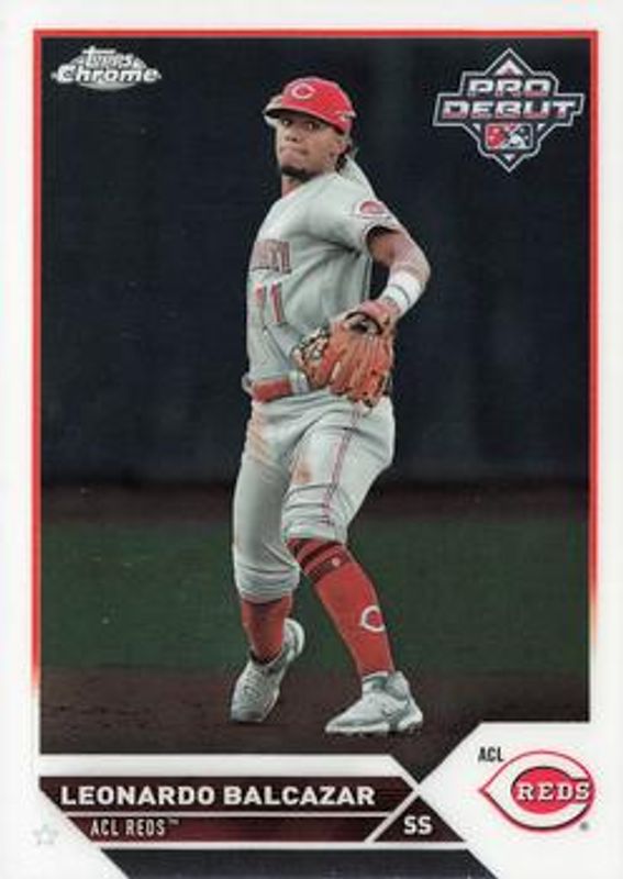The Leonardo Balcazar 2023 Topps Pro Debut #PDC-190 Base Chrome card is 1 of 32 Leonardo Balcazar's card variations in the 2023 Topps Pro Debut set being tracked by Sports Card Investor, including Base, Fuchsia /199, Sparkle /175, Blue /150, and Green /99.