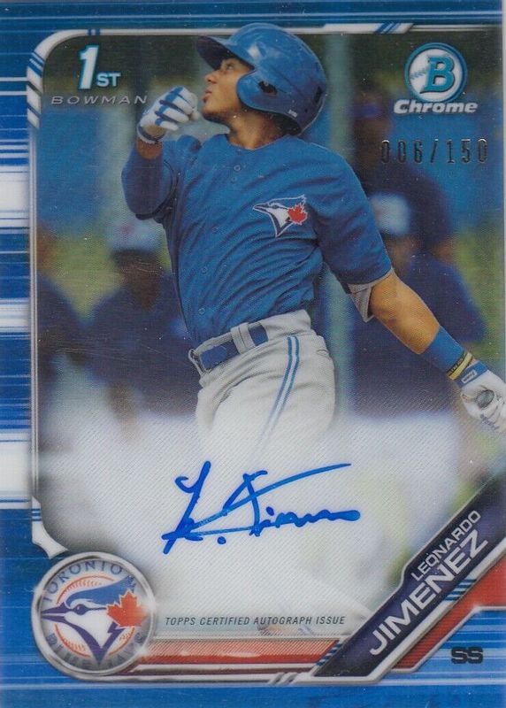 2019 Bowman Chrome Leonardo Jimenez Prospects Auto Blue Refractor #137/150 Jays