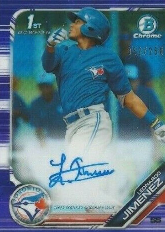 2019 Bowman Chrome Leo Leonardo Jimenez Purple Refractor Auto /250 Blue Jays