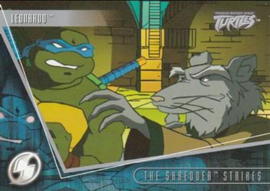 Other popular players in the 2003 Fleer Teenage Mutant Ninja Turtles 2: The Shredder Strikes set include Raphael, Michelangelo, Donatello, F, and Splinter.
