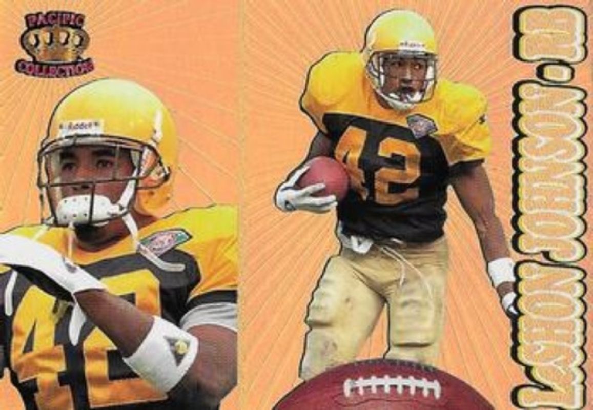 The LeShon Johnson 1995 Pacific Prisms #31 Gold card is 1 of 2 LeShon Johnson's card variations in the 1995 Pacific Prisms set being tracked by Sports Card Investor, including Base.