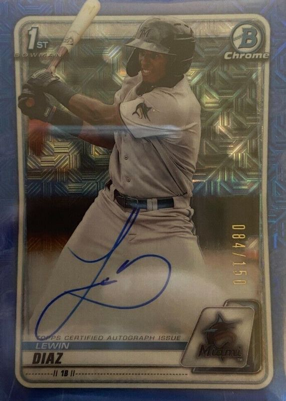 This card is 1 of 18 Lewin Diaz's card variations in the 2020 Bowman Chrome set being tracked by Sports Card Investor, including Prospect Auto (1st), Prospect Auto - Refractor /499 (1st), Prospect Auto - Purple Refractor /250 (1st), Prospect Auto - Blue Refractor /150 (1st), and Prospect Auto - Green Atomic Refractor /99 (1st).