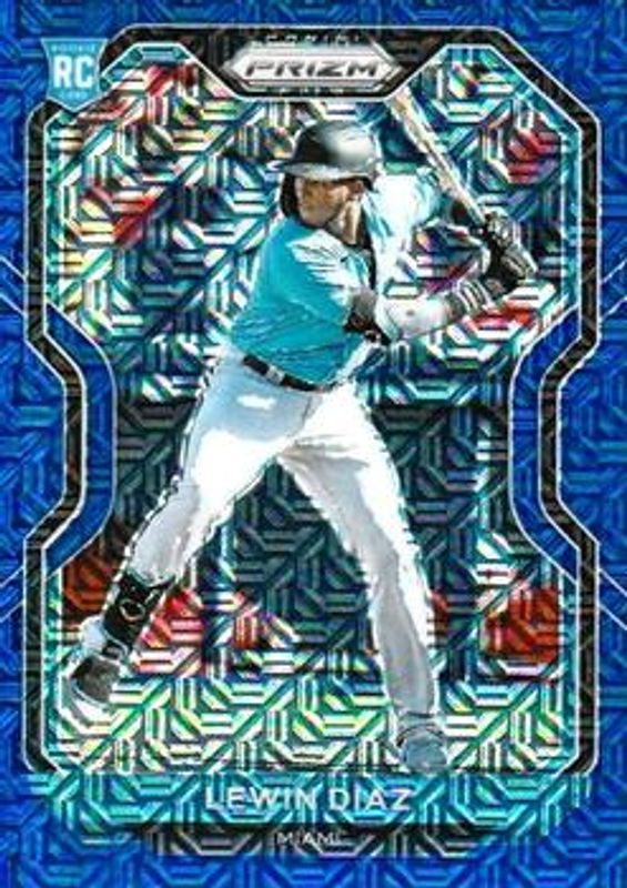 The Lewin Diaz 2021 Prizm #50 Blue Mojo /199 Rookie card is 1 of 70 Lewin Diaz's card variations in the 2021 Prizm set being tracked by Sports Card Investor, including Base, Blue, Blue Velocity, Carolina Blue, and Cosmic Haze.