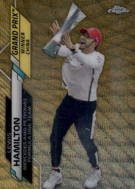 Best Prices Available For Sale of Lewis Hamilton 2020 Topps Chrome Formula 1 #135 Grand Prix Winners - Gold Wave Refractor /50 (China)