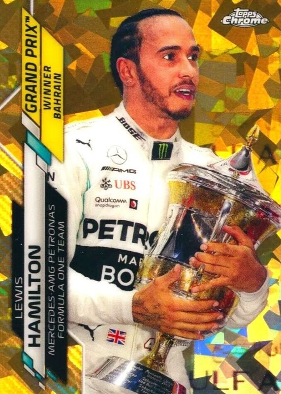 Best Prices Available For Sale of Lewis Hamilton 2020 Topps Chrome Formula 1 Sapphire Edition #134 Grand Prix Winners - Gold /50 (Bahrain)