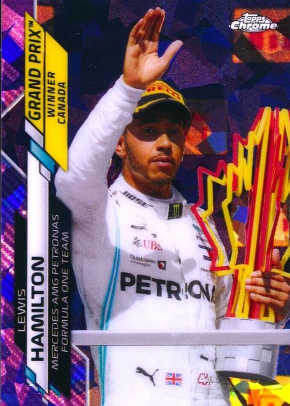 Recent Sales of Lewis Hamilton 2020 Topps Chrome Formula 1 Sapphire Edition #139 Grand Prix Winners - Purple /10 (Canada) SGC 8