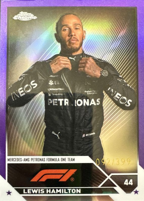 Lewis Hamilton 2023 Topps Chrome F1 #21 PURPLE REFRACTOR #92/399! GOAT DRIVER!