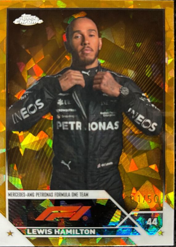 Auctions Ending Soon for Lewis Hamilton 2023 Topps Chrome Formula 1 Sapphire Edition #21 Gold /50 RAW