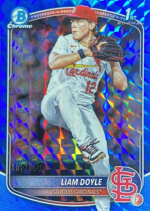 2025 Bowman Draft Liam Doyle Chrome Blue Geometric Refractor 1st #/150 Cardinals