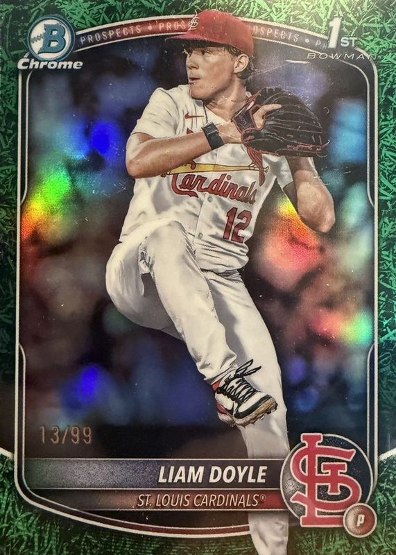 2025 Bowman Draft Liam Doyle Chrome Green Grass Refractor 1st #/99 Cardinals