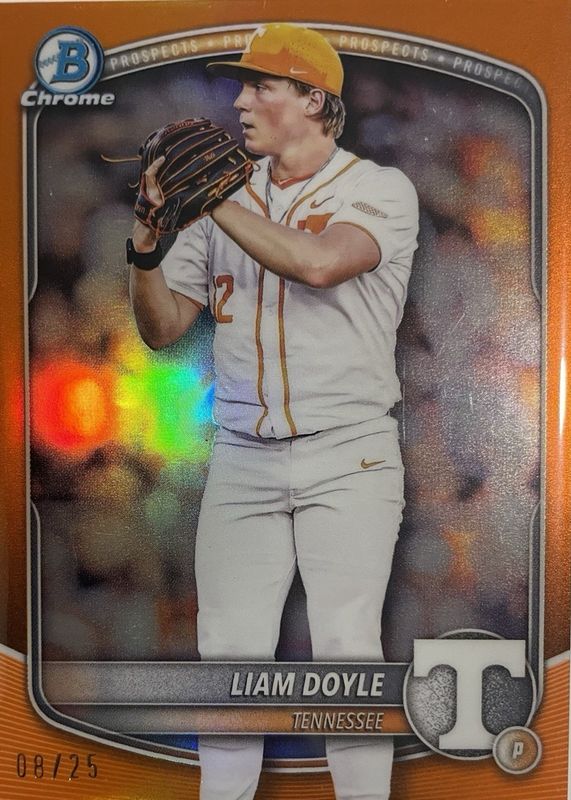Liam Doyle 2025 Bowman Draft #BDC-12 Chrome - Orange Refractor /25 (1st) RAW Price Guide