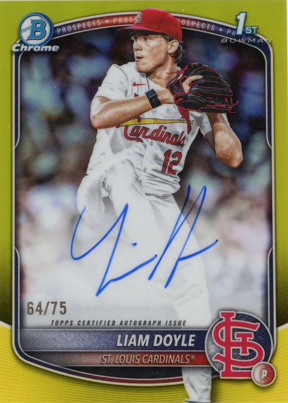 Liam Doyle 2025 Bowman Draft #CPA-LD Chrome Prospect Auto - Yellow Refractor /75 (1st) RAW Price Guide