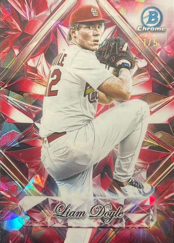 The Liam Doyle 2025 Bowman Draft Sapphire Edition #SS-5 Sapphire Selections - Red /5 card in Raw condition has not changed in price in the last 30 days and was last sold for $295.00 .