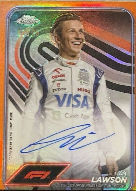 Best Prices Available For Sale of Liam Lawson 2024 Topps Chrome Formula 1 #CAC-LAW Autographs - Orange Refractor /25