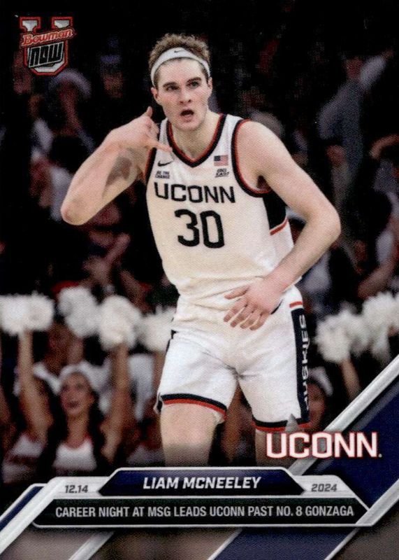 2024-25 BOWMAN U NOW CARD UCONN LIAM MCNEELEY #31 CAREER NIGHT AT GONZAGA