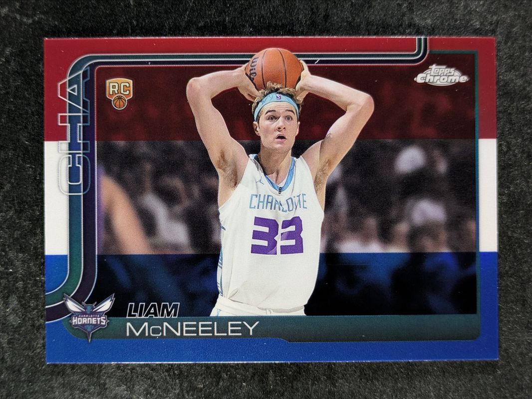 Liam McNeeley 2025 Topps Chrome #279 Red White & Blue Refractor Rookie RAW Price Guide