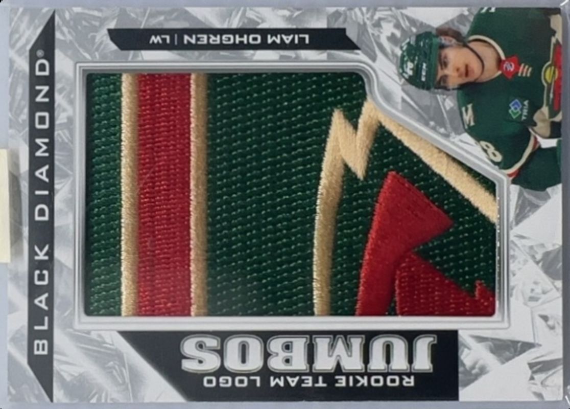 The Liam Ohgren 2024 Upper Deck Black Diamond #RTL-LO Rookie Team Logo Jumbos Puzzle Patch card is 1 of 55 Liam Ohgren's card variations in the 2024 Upper Deck Black Diamond set being tracked by Sports Card Investor, including Base /349, Diamond Relic Rookies /99, Premium Relics /50, Autographs /49, and Diamond Relic Rookies Emerald /10.