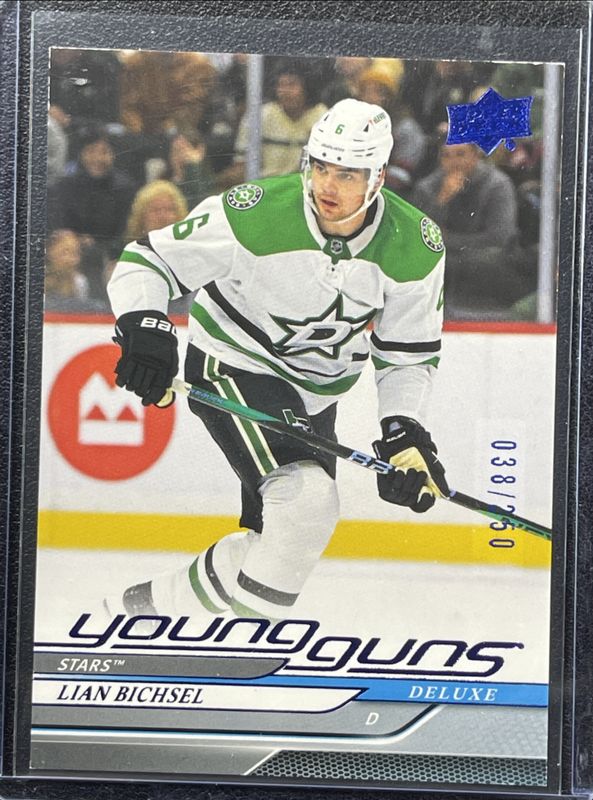 The Lian Bichsel 2024 Upper Deck Extended Series #704 Deluxe /250 Rookie card is 1 of 41 Lian Bichsel's card variations in the 2024 Upper Deck Extended Series set being tracked by Sports Card Investor, including Base, Young Guns Base, Clear Cut, Outburst, and Young Guns - Clear Cut.