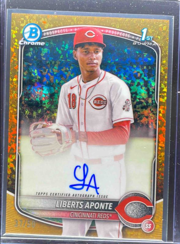 The Liberts Aponte 2025 Bowman Chrome #CPA-LA Prospect Auto - Gold Mini-Diamond Refractor /50 (1st) card in Raw condition has not changed in price in the last 30 days and was last sold for $60.00 .