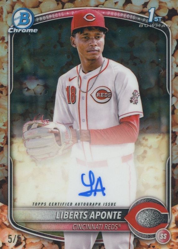 Liberts Aponte 2025 Bowman Chrome #CPA-LA Prospect Auto - Popcorn Refractor /5 (1st) RAW Price Guide