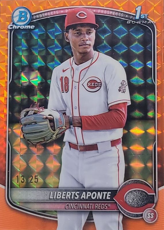 2025 Bowman Chrome 1st Liberts Aponte Orange Geometric /25 Reds