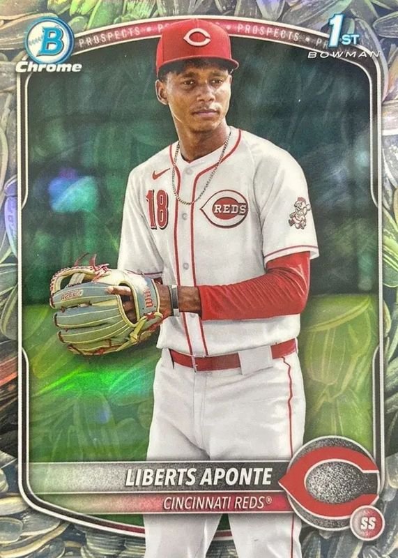 Auctions Ending Soon for Liberts Aponte 2025 Bowman Chrome #BCP-174 Prospects - Sunflower Seeds Refractor /(SSP) (1st) RAW