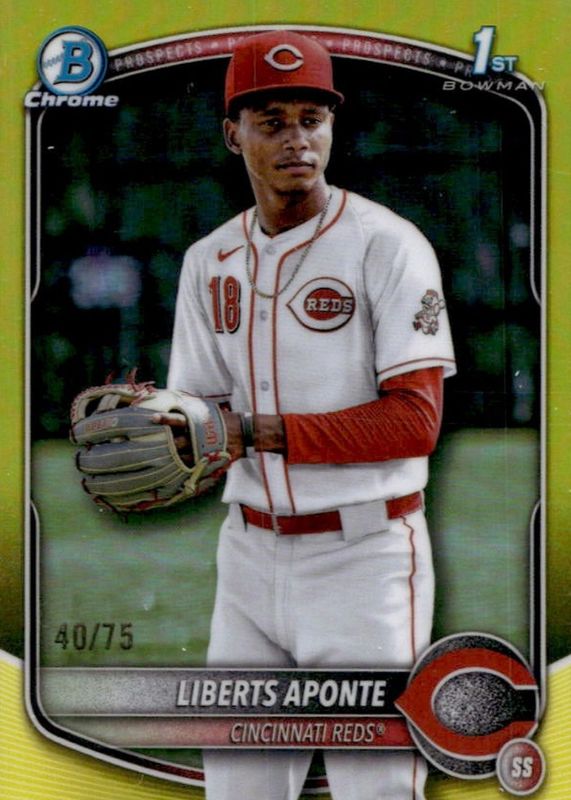 2025 Bowman Chrome Liberts Aponte Yellow Refractor 1st Prospect #/75 Reds