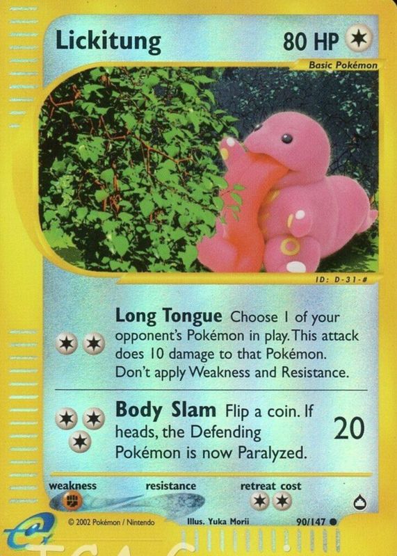 Lickitung 2003 Aquapolis #090/147 Reverse Holo RAW TCG (NEAR MINT) Price Guide