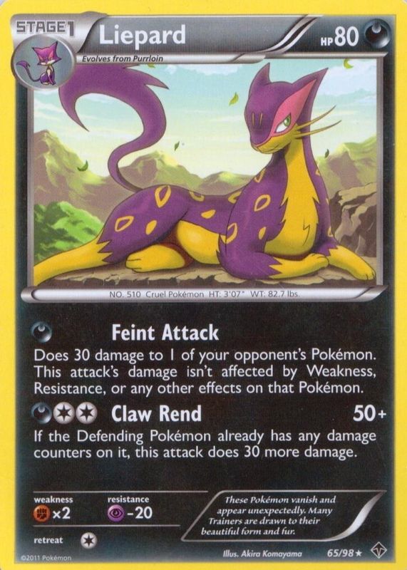 The Liepard 2011 Black & White: Emerging Powers #65/98 Base card in Raw TCG (Near Mint) condition has not changed in price in the last 30 days and was last sold for $1.01 .