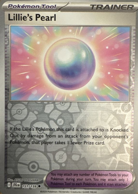 The Lillie's Pearl 2025 Scarlet & Violet: Journey Together #151/159 Base card in Raw TCG (Near Mint) condition has not changed in price in the last 30 days and was last sold for $0.99 .