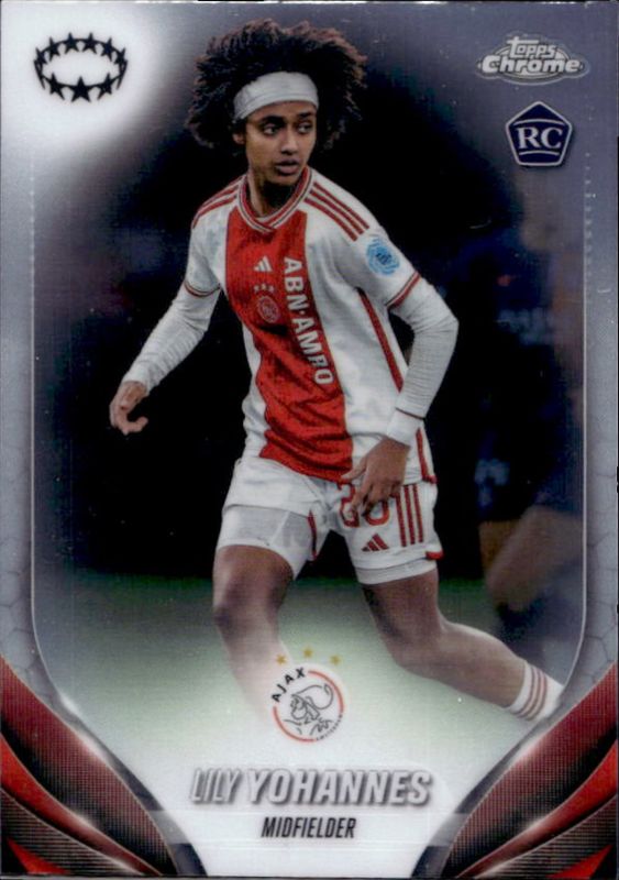 The Lily Yohannes 2023 Topps Chrome UEFA Women's Champions League #25 Base card is 1 of 22 Lily Yohannes' card variations in the 2023 Topps Chrome UEFA Women's Champions League set being tracked by Sports Card Investor, including Aqua Prism, Pulsar, Refractor, XI, and Purple Pulsar /299.