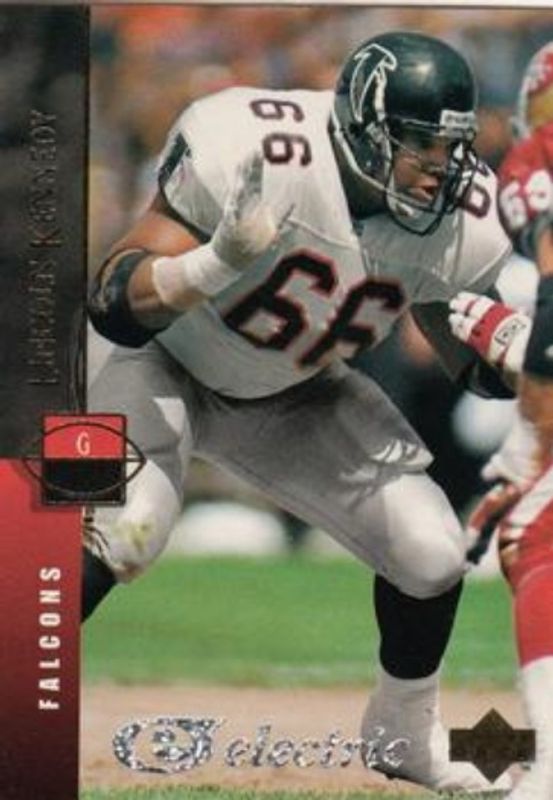 The Lincoln Kennedy 1994 Upper Deck #212 Electric card is 1 of 3 Lincoln Kennedy's card variations in the 1994 Upper Deck set being tracked by Sports Card Investor, including Base, and Electric Gold.