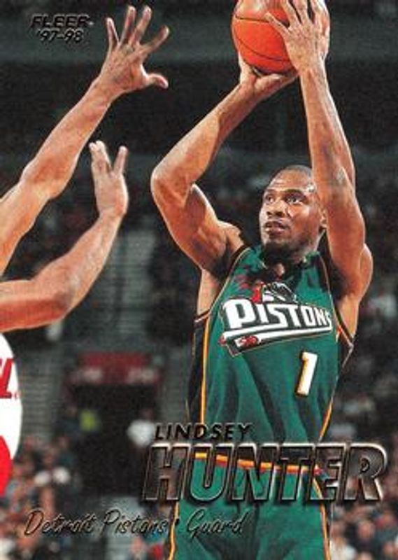 The Lindsey Hunter 1997 Fleer #161 Base card is 1 of 3 Lindsey Hunter's card variations in the 1997 Fleer set being tracked by Sports Card Investor, including Crystal, and Tiffany.