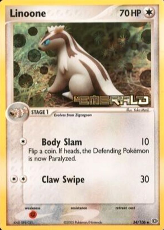 Linoone 2005 EX: Emerald #034/106 Reverse Holo RAW TCG (NEAR MINT) Price Guide