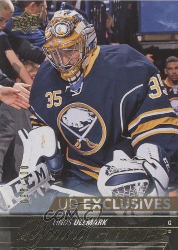 The Linus Ullmark 2015 Upper Deck #472 Young Guns - UD Exclusives /100 Rookie card in Raw condition has not changed in price in the last 30 days and was last sold for $157.50 .